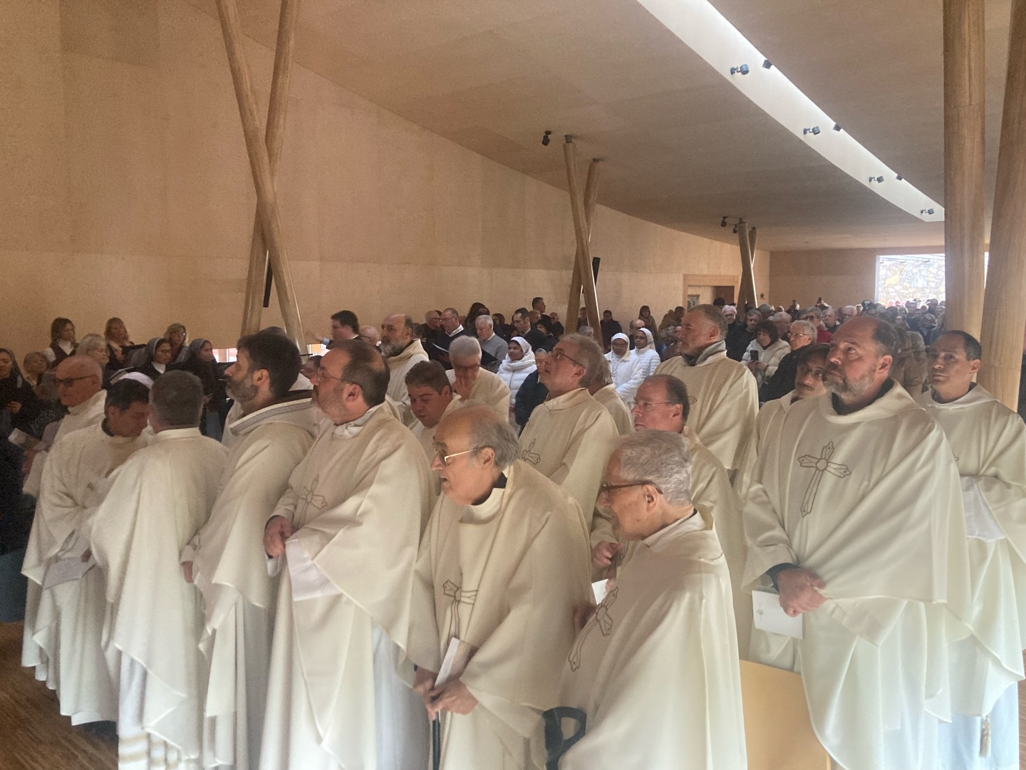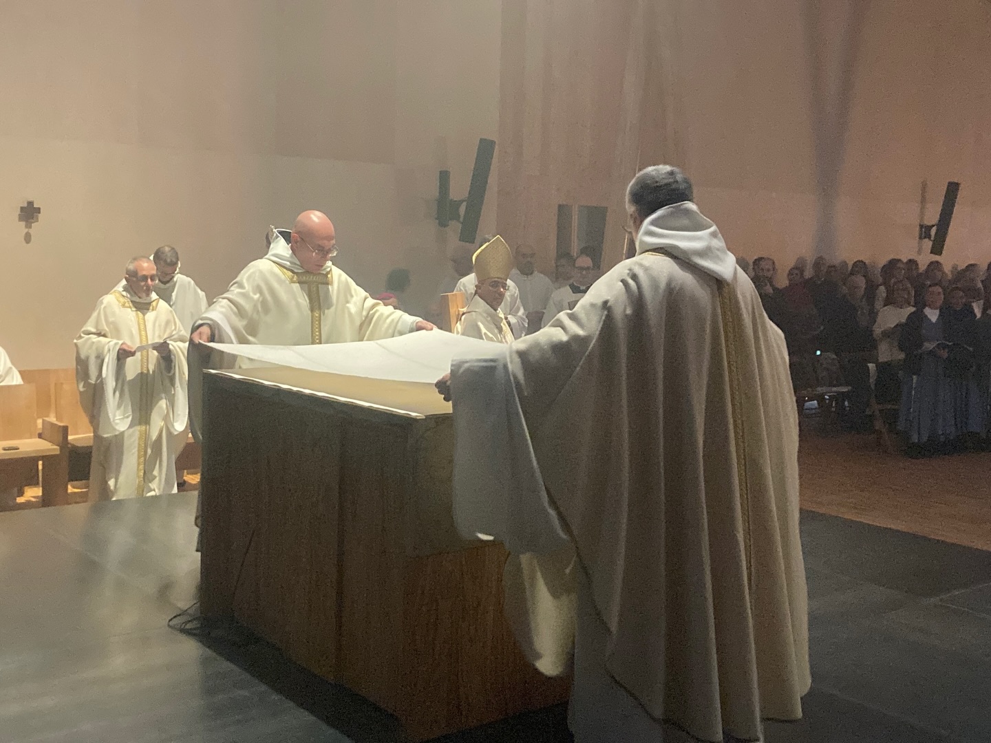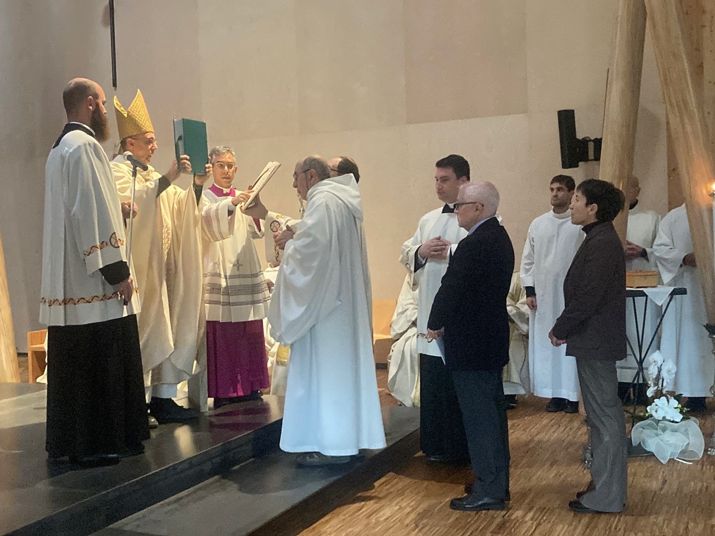 Al termine dei riti di comunione, l’Eucaristia è stata riposta solennemente nel nuovo tabernacolo, completando così il rito di dedicazione e segnando l’inizio della vita liturgica della nuova chiesa monastica.