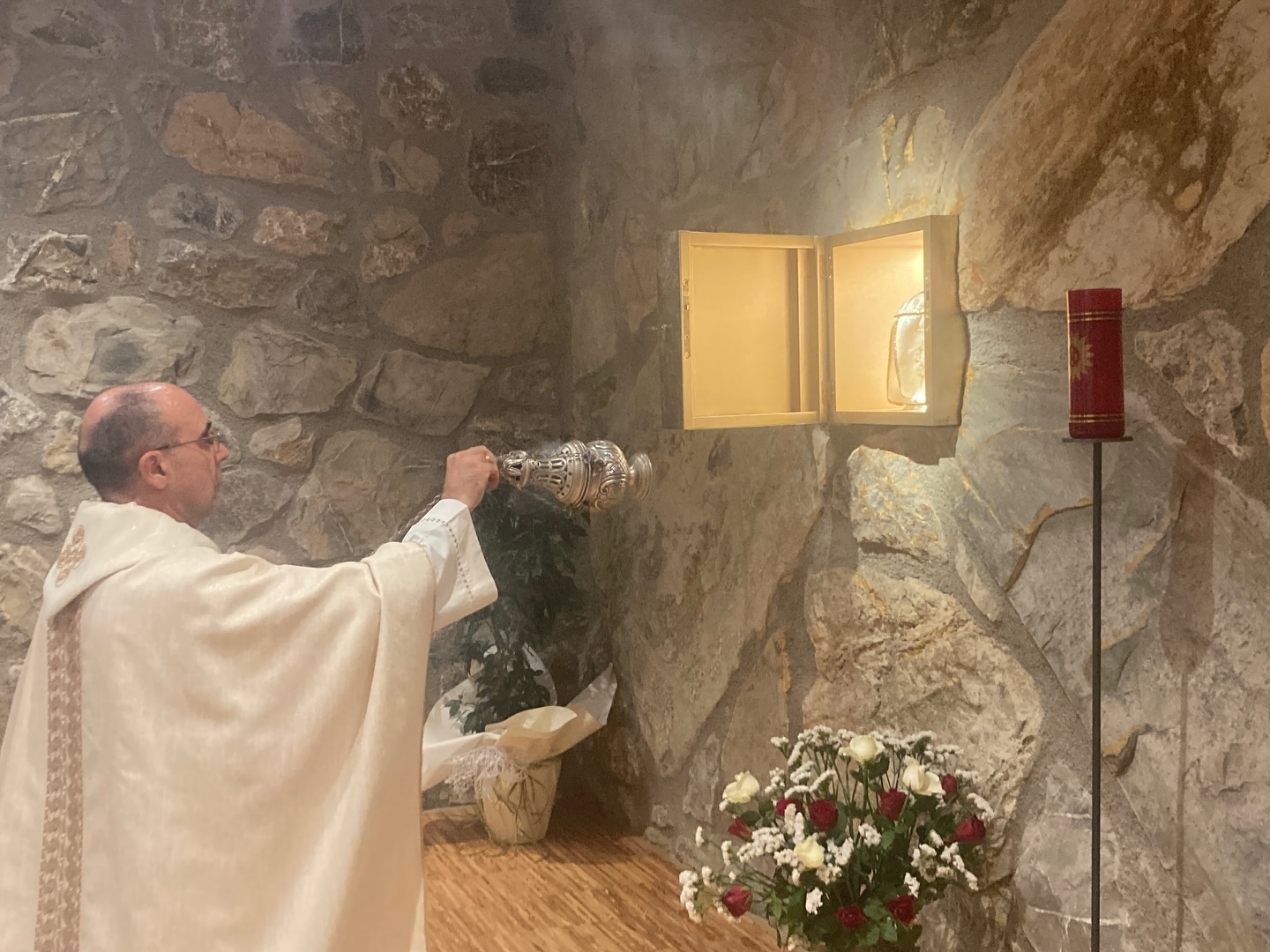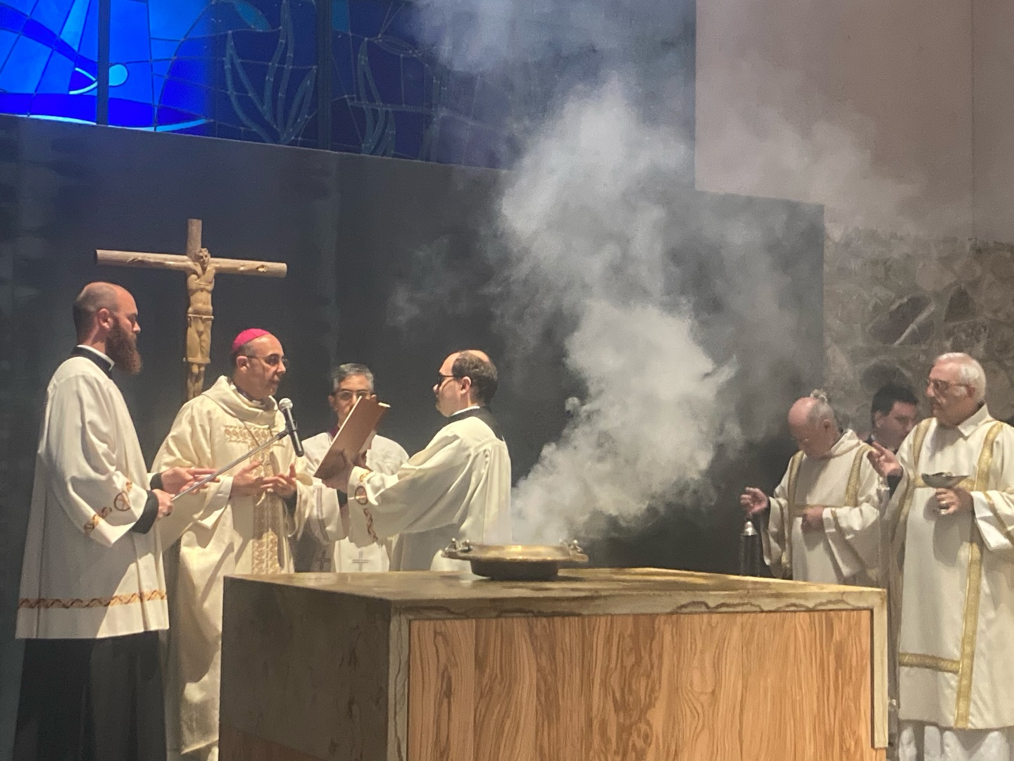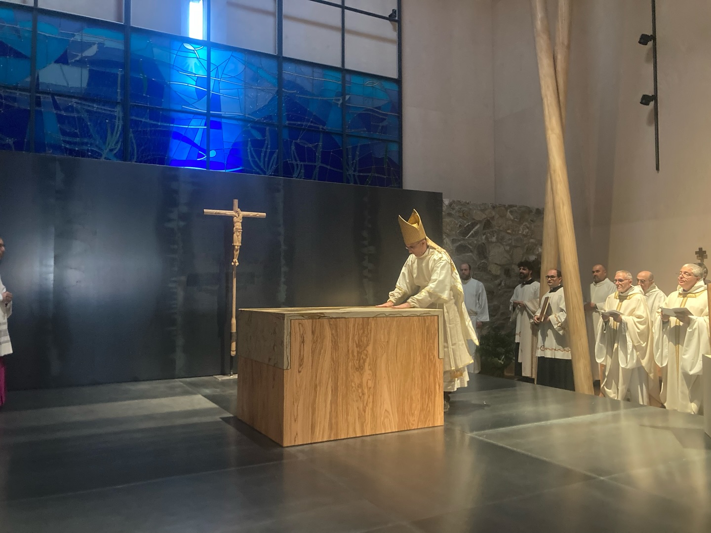 Al termine dei riti di comunione, l’Eucaristia è stata riposta solennemente nel nuovo tabernacolo, completando così il rito di dedicazione e segnando l’inizio della vita liturgica della nuova chiesa monastica.