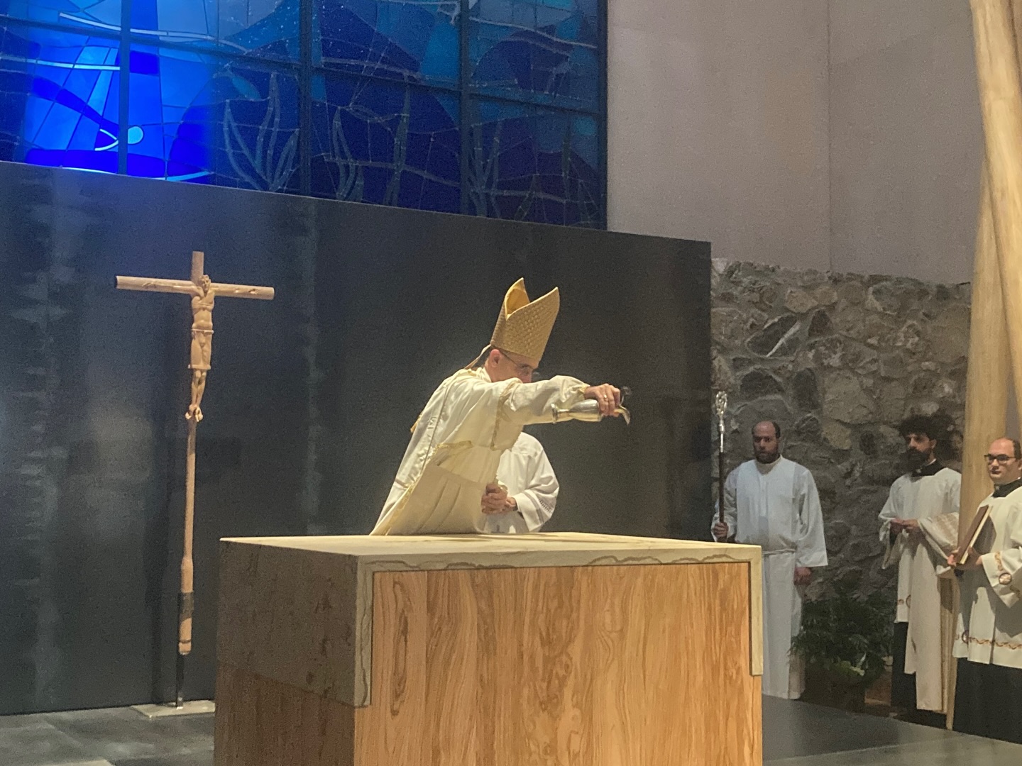 Nell’omelia, il vescovo Bernardino ha ricordato il significato profondo dell’atto compiuto dalla comunità ecclesiale: “Mettiamo al centro la presenza di Gesù, Gesù vivo: è Lui la pietra angolare che sostiene il peso del mondo, che dà consistenza alla Chiesa e che rende comprensibile ciò che oggi celebriamo.”