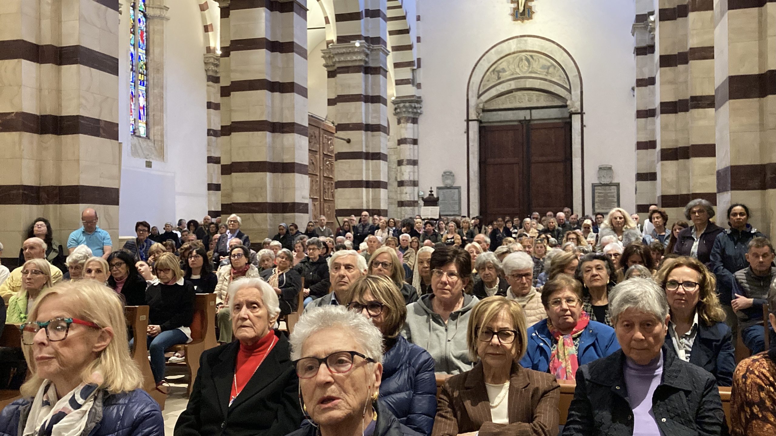 Cattedrale gremita, il 23 aprile 2025, a Grosseto per la Messa in suffragio del Papa Francesco, deceduto lunedì 21 aprile ad 88 anni.