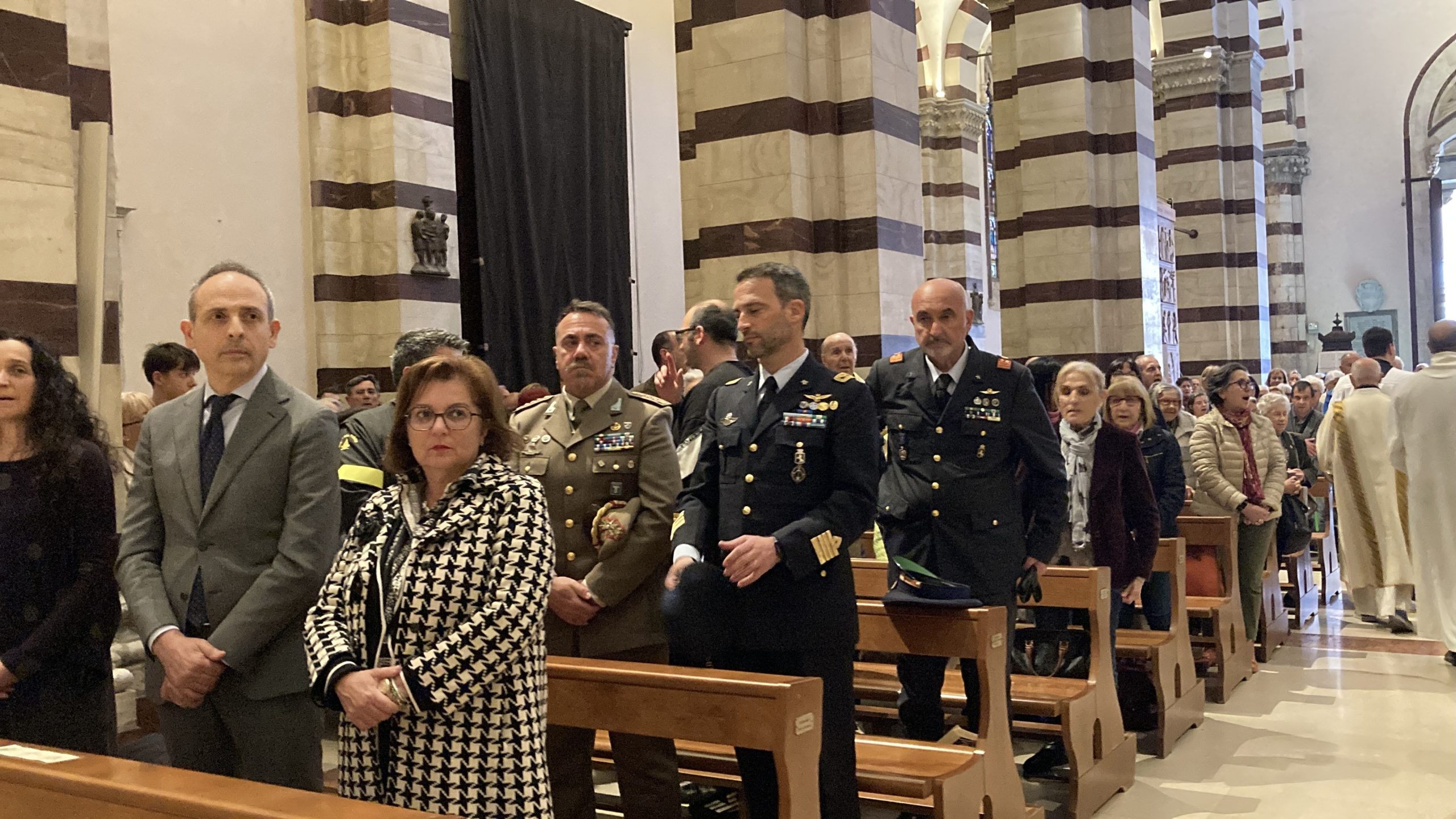 Presenti alla celebrazione il prefetto Paola Berardino, il questore Claudio Ciccimarra; il colonnello Salvatore Santone, comandante di Presidio e comandante del Centro militare veterinario; il colonnello pilota Davide Dentamaro, comandante del IV Stormo Caccia Intercettori di Grosseto; l’ingegner Roberto Bonfiglio, comandante dei Vigili del Fuoco di Grosseto.