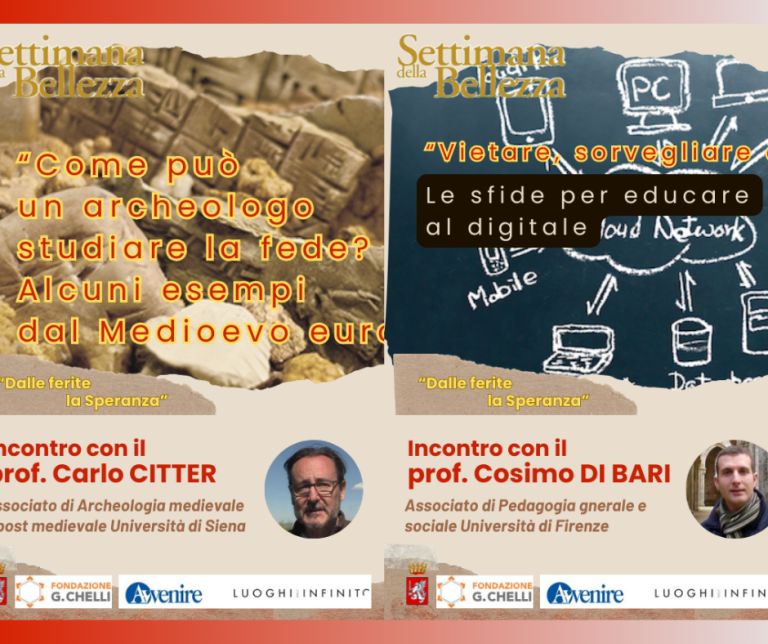 «Queste due giornate – dicono gli organizzatori della Settimana della Bellezza – saranno ulteriori occasioni di riflessione sul tema che fa da sfondo a questa edizione: dalle ferite la speranza. Siamo convinti, infatti, che l’educazione delle nuove generazioni sia un grande vettore di speranza e che per questo sia decisivo investire, anche come Chiesa, nell’educazione per avere gli strumenti giusti per approcciare la complessità senza averne paura, ma volendo starci dentro con apertura di cuore e con speranza».